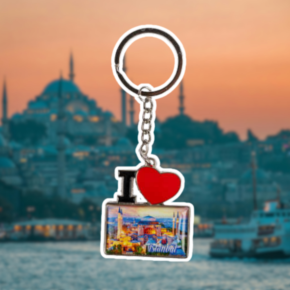 Ürünün metal halka ve zincir bağlantısı, anahtarlarınızı sağlam şekilde taşımayı kolaylaştırır. Çanta askısına, valiz fermuarına veya cüzdana takarak da kullanabilir; böylece hem aksesuar olarak görünür olur hem de anahtarlarınız çantanızda daha kolay bulunur. Turistik hediyelik olarak, İstanbul seyahati sonrası hatıra arayanlar ya da sevdiklerine “İstanbul” temalı küçük bir hediye vermek isteyenler için idealdir.