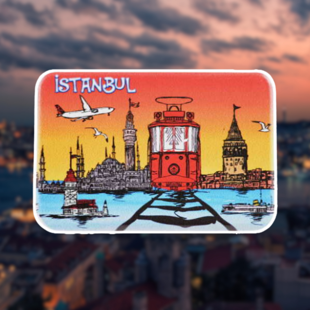İstanbul Tramvay Silüeti Magnet İstanbul’un simgelerini tek karede buluşturan bu magnet; nostaljik tramvay, Galata Kulesi, Kız Kulesi ve şehir silüetiyle bulunduğu her yüzeye İstanbul ruhunu taşır. Canlı illüstrasyon tarzı tasarımı sayesinde buzdolabınızda, metal panonuzda ya da not köşenizde dikkat çeken dekoratif bir detay olur. İstanbul hatırası arayanlar için de pratik ve anlamlı bir hediye alternatifidir.